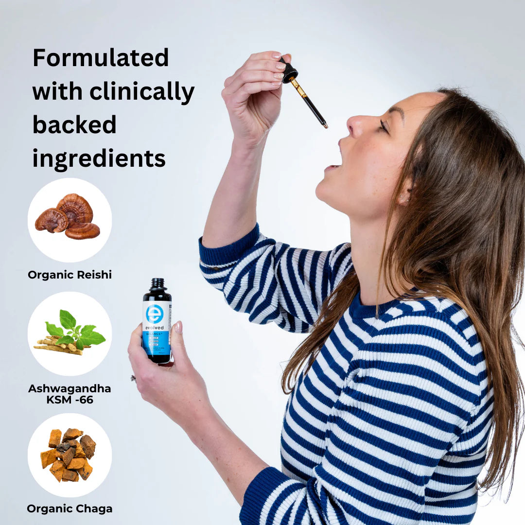 Balance+ Mushroom & Adaptogen Liquid Extract | Organic Reishi, Chaga & Ashawagandha for Calm, Sleep & Immunity